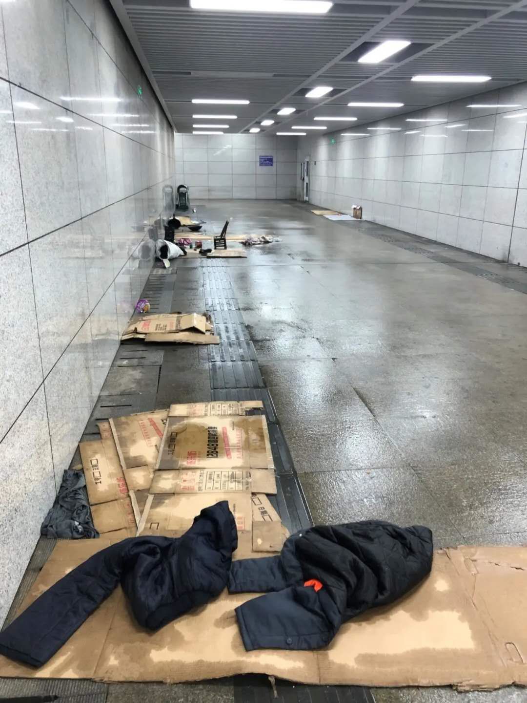 ▲图片来自南风窗。滞留人员,被“工作人员”水浇湿了衣被。
