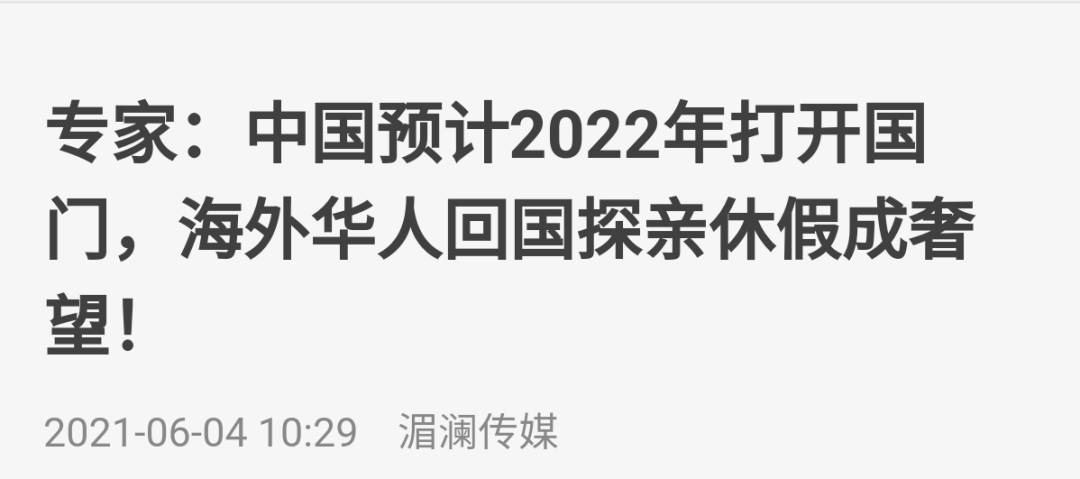 很多人认为,等国内同胞全部打完疫苗,是不是就会对打了疫苗的中国公民回国探亲要打开“方便之门”。