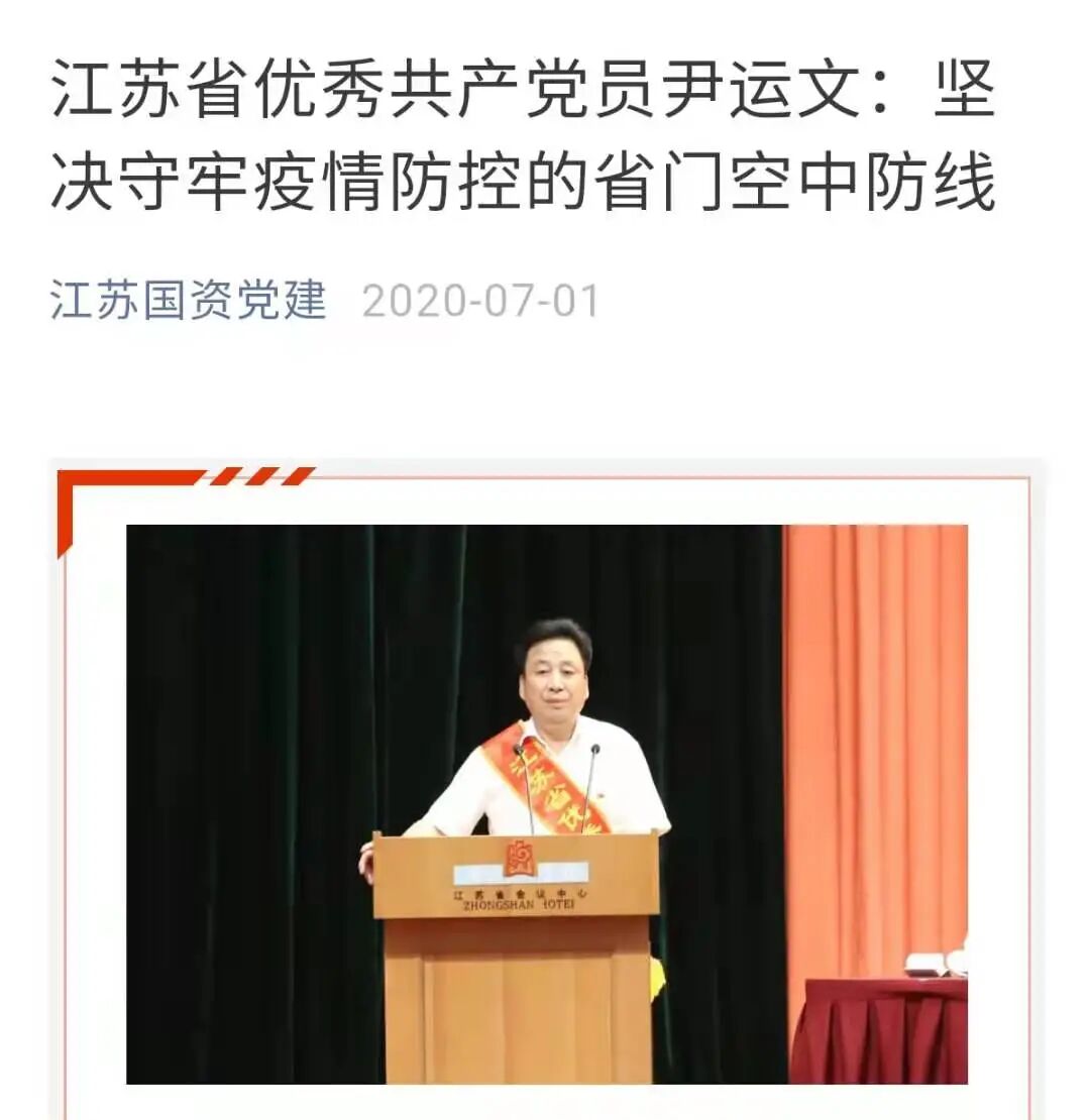 极为讽刺的是,这个尹运文,在一年前因为在机场防疫工作做的出色,得到了“江苏省优秀共产党员”的表彰。