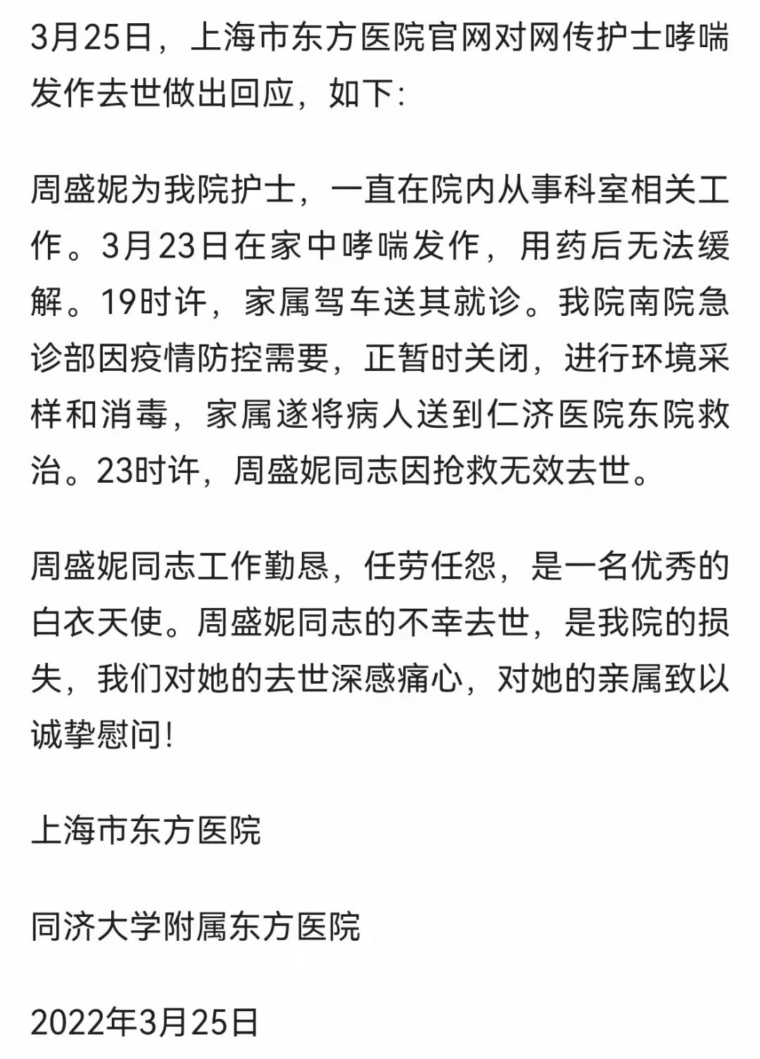 注:今天看到新闻,上海市东方医院护士周盛妮3月23日在家中哮喘发作,东方医院急诊部因为疫情防控需要暂时关闭,导致其不幸去世的消息,因此,决定把这篇两个月前撰写的文章,分享给大家。