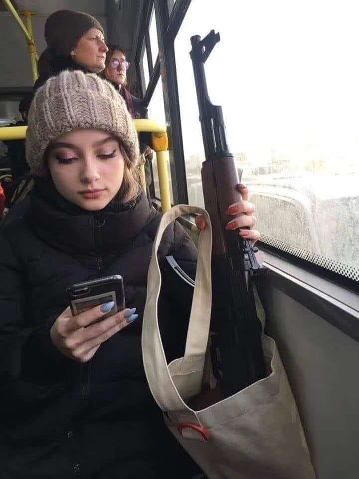 上面这张图片在网上看到,说这个女孩上菜场买菜,是不是买菜不用求证,请注意她拿着一把枪出入公共场所。如果在美国,胆敢“过严”限制居民,可能枪击案就泛滥了。