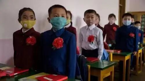 图片来自网络。据法媒报道,朝鲜疫情后小学生胸前佩戴红花,并戴着口罩上课。这红花是不是象征着“光荣和胜利”的意思?