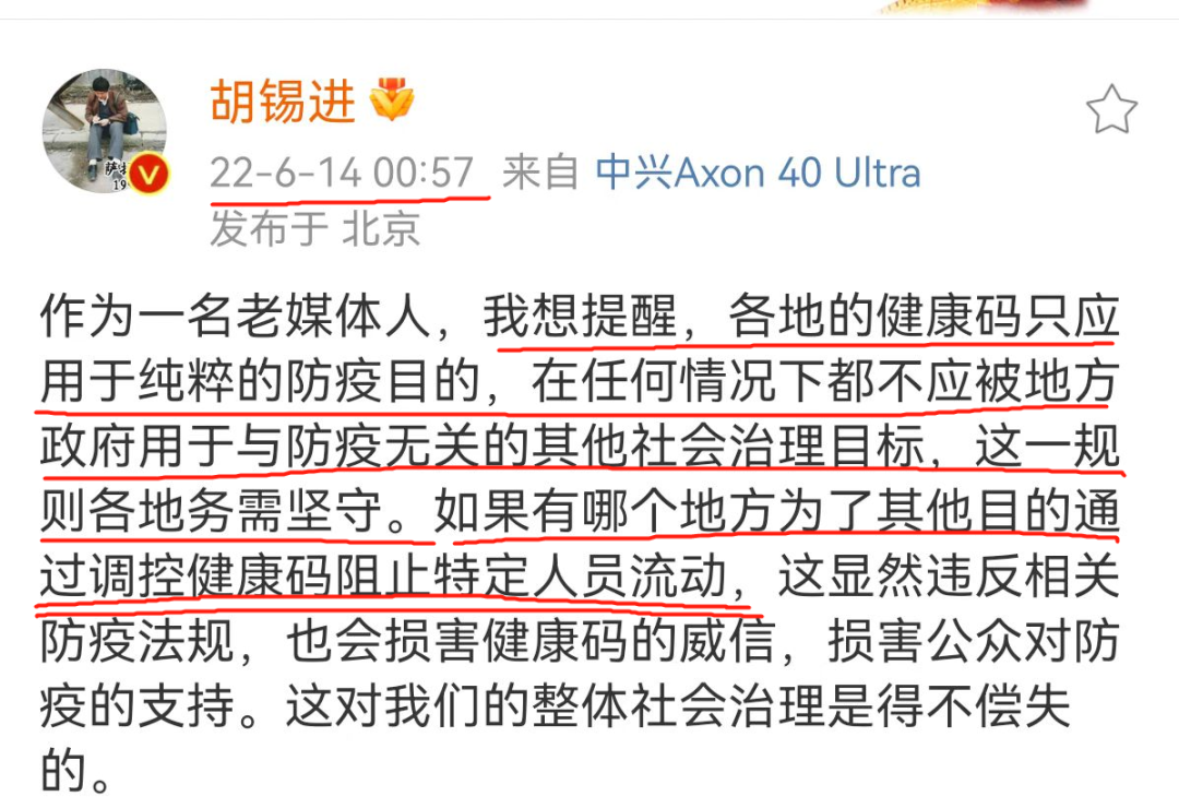 河南“红码事件”曝光以后,舆论“带路党、风向标”的退休大主编胡锡进,可谓是第一时间亮出了自己的态度。