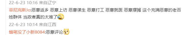 就上述发生在丹东“袭警罪”事件而言,为什么网上评论一边倒呢?说明百姓已经对严格的封控措施疲惫不堪,对呆板的无人情味的关卡不满,对动不动就给扣上“恶意”的帽子不满意......