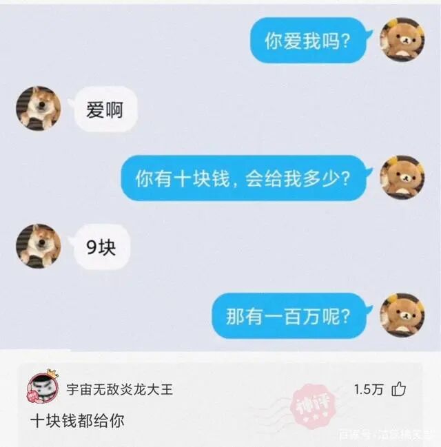 假如有10块钱时,我会给你9块,假如我有100万,我依然会给你9块,因为我对你的爱永远不会改变。