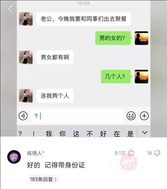 兄弟们,今天我对象要和她的同事们一起出去吃饭,我要怎么回复才显得大度?”。
