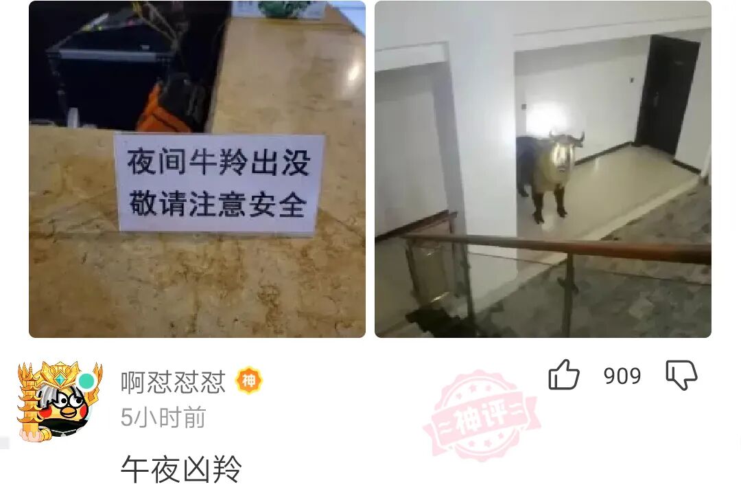 夜间牛羚出没,敬请注意安全!