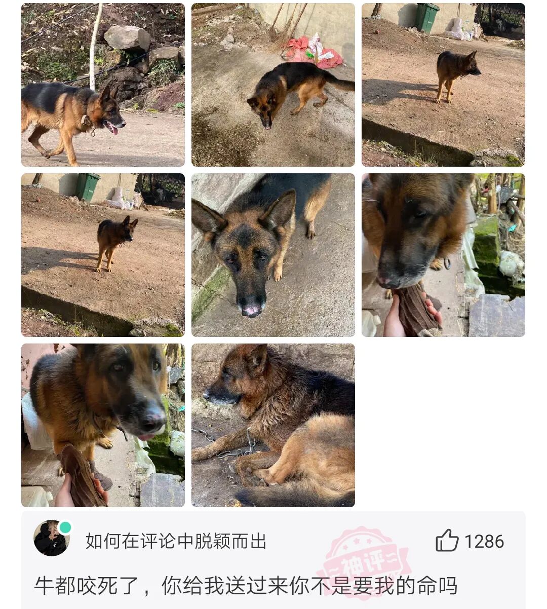 有没有想要狗的大哥,这有一只纯种的德牧,在我家农场咬死两头牛了昨晚又咬出个重伤我们家已经留不住他了我又不舍得让他死。