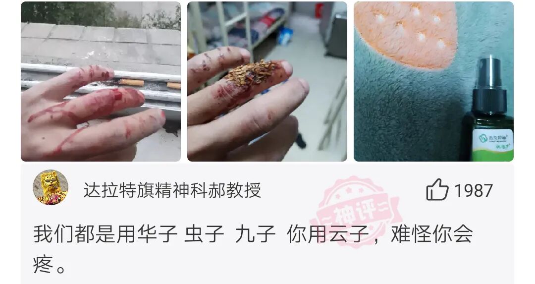 是哪个逼玩意说用烟草止血的站出来这怎么清理掉疼死人