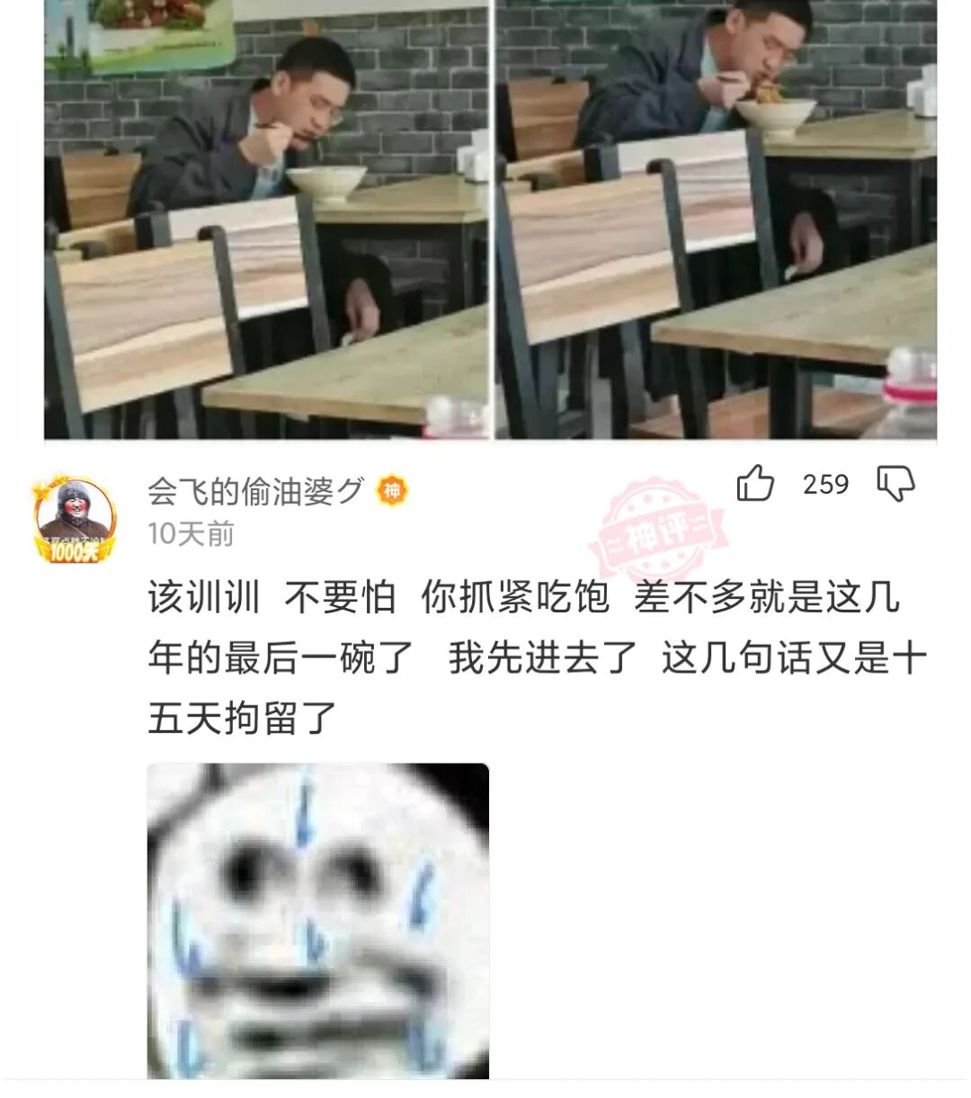 面前的这家伙吃面声音真是太大了,越听越气这人素质真低,你们说我要不要去训他两句?
