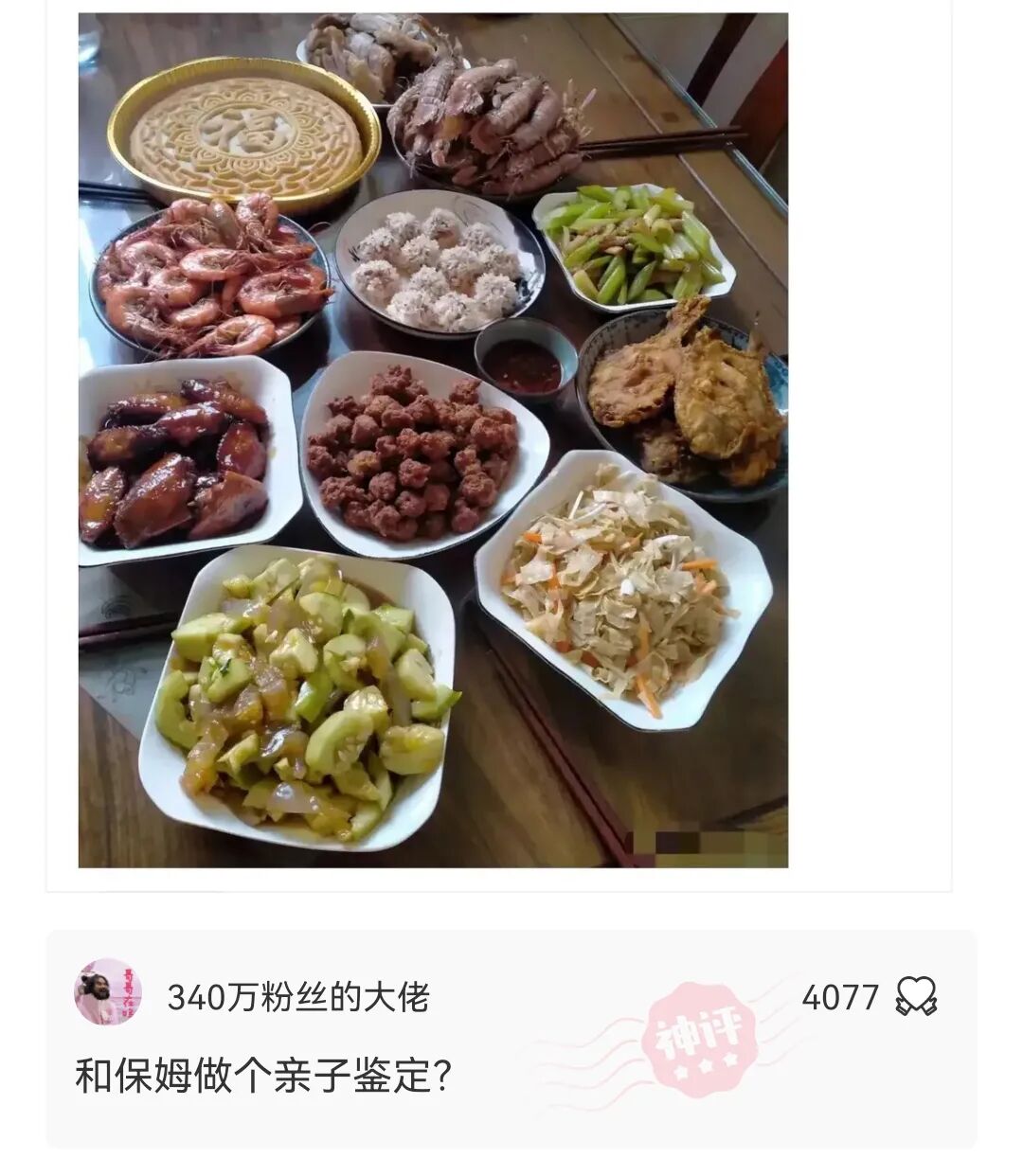 保姆说这一桌成本500元,没骗人吧? 一女子过节请客,让保姆给做一桌拿手菜。结果保姆忙了一上午,做了一桌子菜。然后报账买菜花了498.5元。女子:但是怎么总感觉有问题呢?