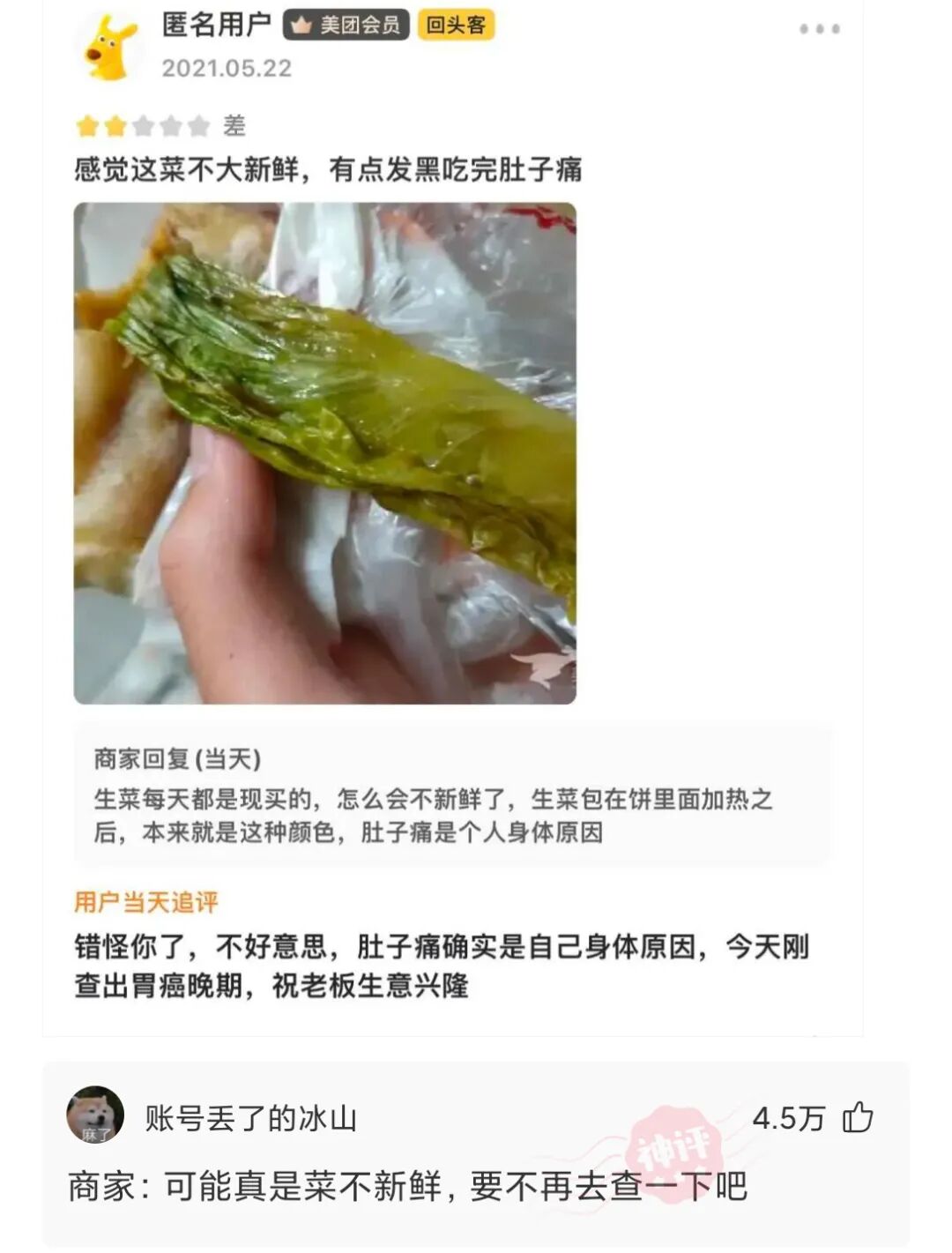 今天又去医院查了一下,果然是商家菜有问题,无良商家!
