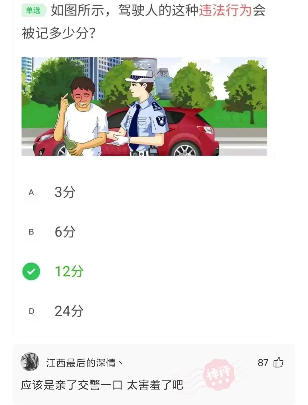我真的很不能理解,为什么脸就红了一下,就直接扣12分?