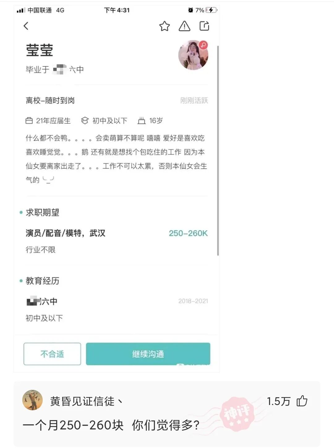 这就是普信女吗,初中学历,什么都不会还敢要250-260k,这世界还有王法?