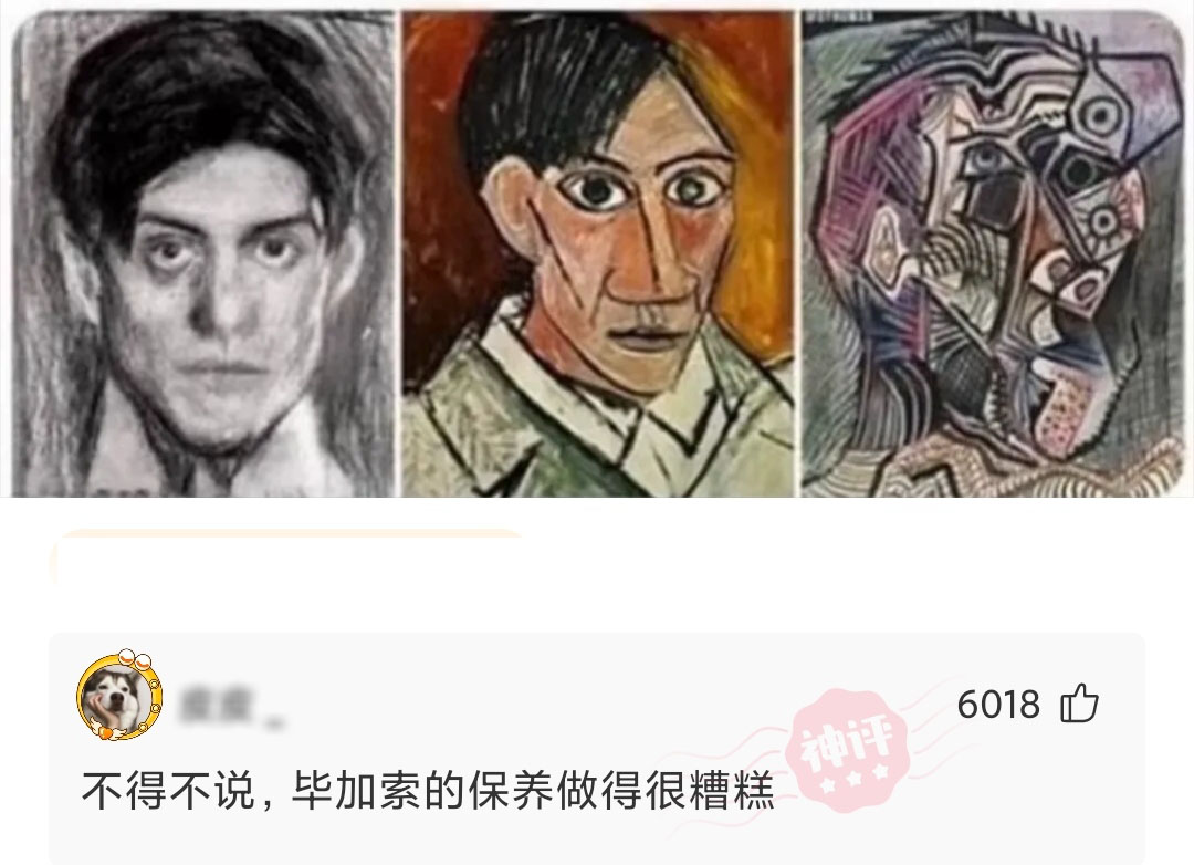 毕加索18岁、25岁、90岁的自画像,真是越画越抽象了!