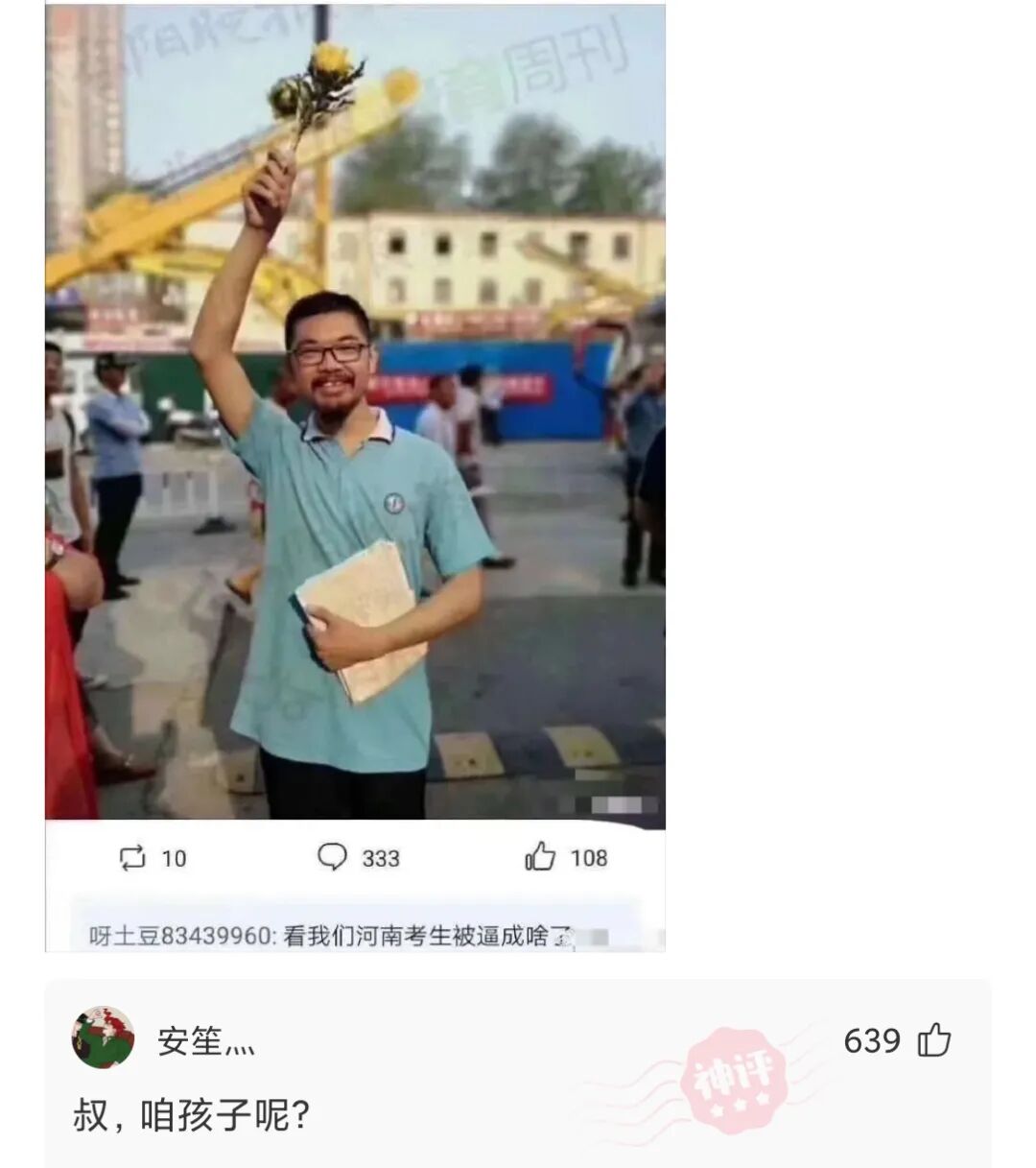 考试前,洛阳三中一名考生高举一朵向日葵寓意一举夺魁!!
