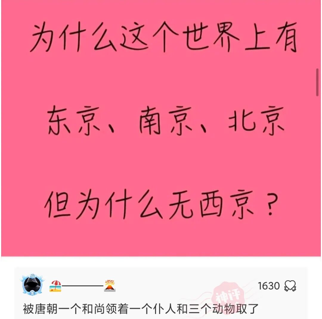 为什么这个世界上有东京、南京、北京但为什么无西京?