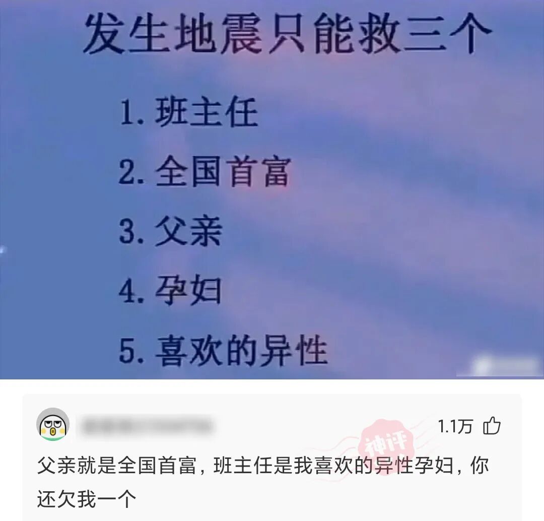 假如发生地震了,但你只能从下面救三个,你会怎么选?