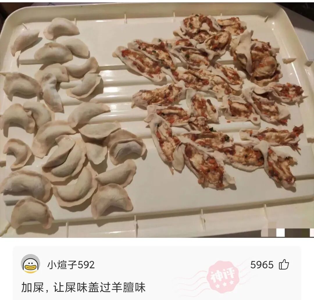 这可咋整,废了半天才包好的羊肉饺子,吃了一口真特么太膻了,扔又不舍得,只好剥饺子,只吃饺子皮,请问逗包们,羊肉馅怎么处理没有膻味啊?