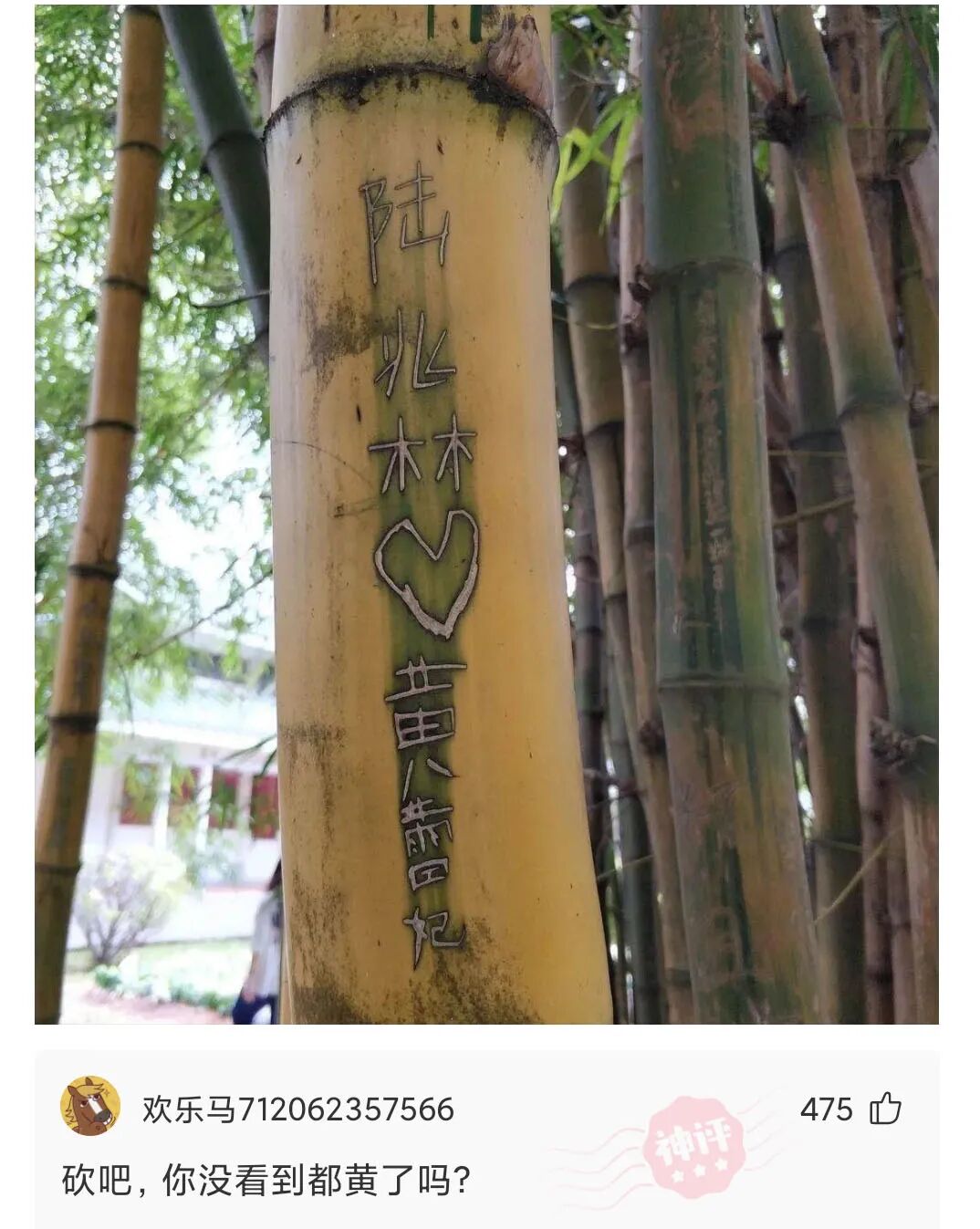 陆兆林|黄蕾妃, 你们还有没有在一起呀?这个竹子我可要砍掉了呀!
