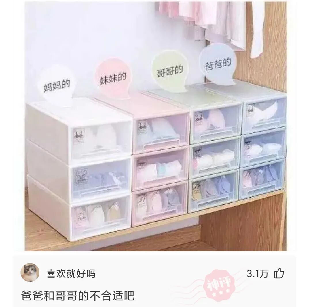 搞定一家人的内衣透明收纳,可视清断可见里面放的小衣物,以便快速找到想要的东西!逗包们,你们在家都怎么整理衣物呢?