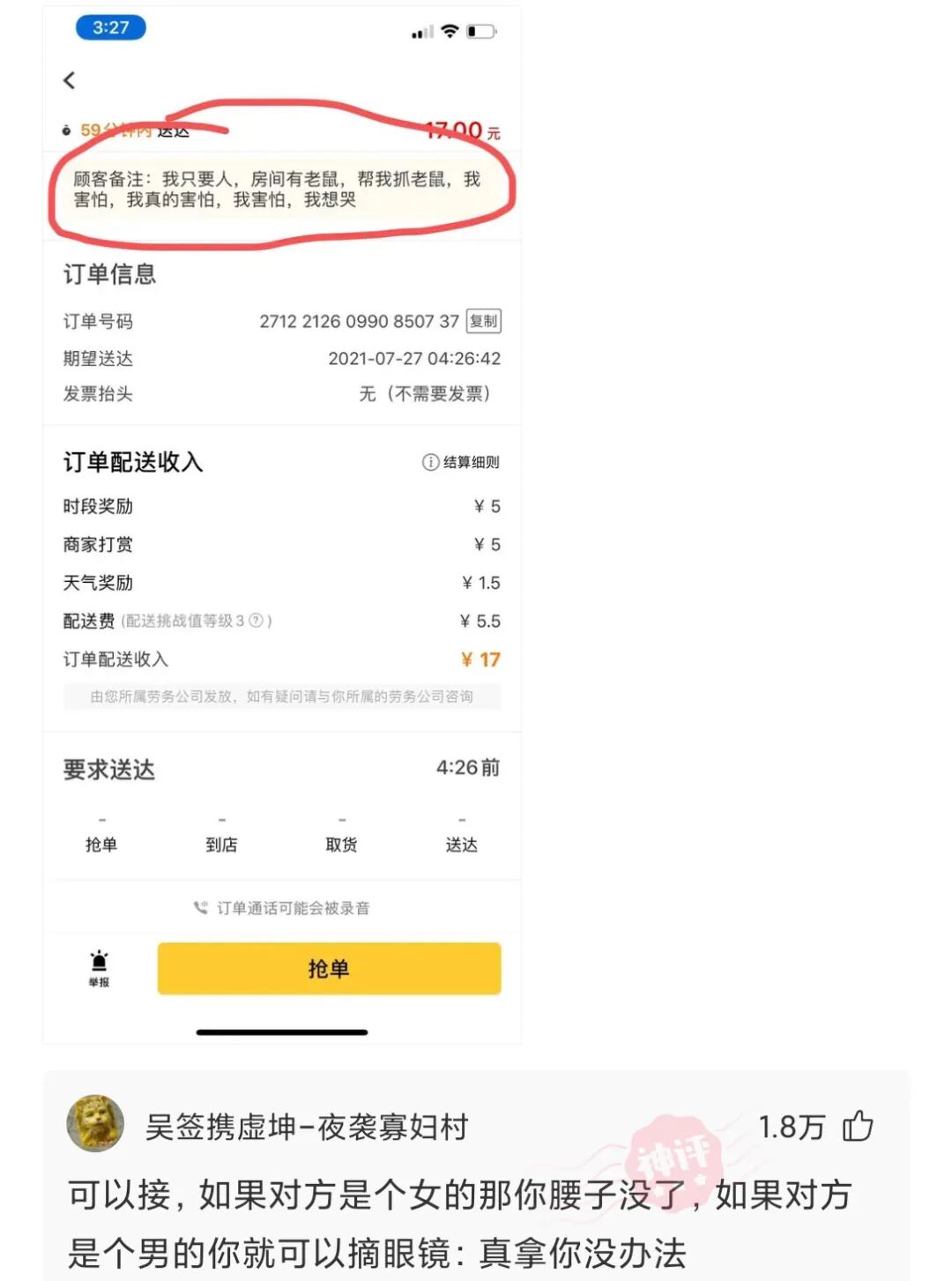 我是个外卖骑手,但今天却接到了抓老鼠的单子,你们说我这个单子接不接?
