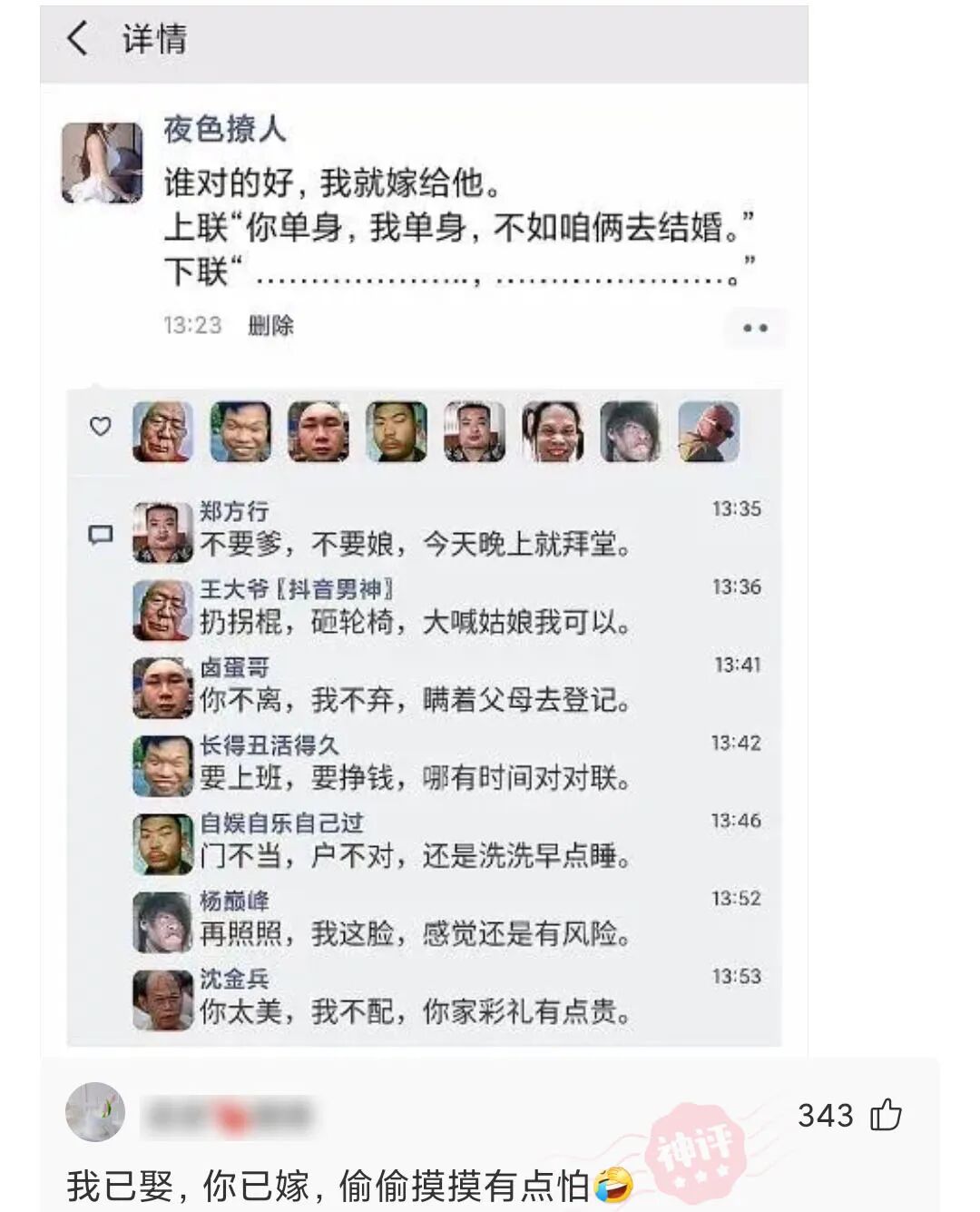 逗包们,接下联,谁接的好,我就嫁给谁,拨刀吧。。。