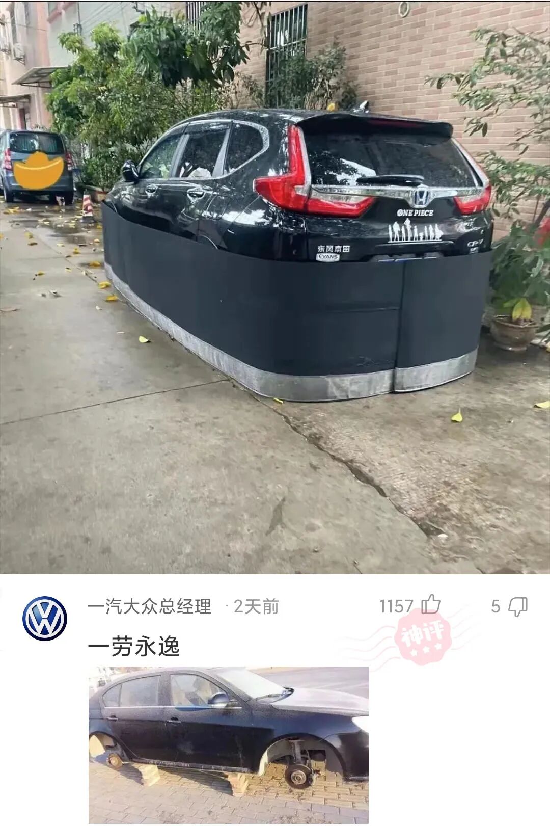 一辆被围挡起来的本田汽车,应该是为了防止被宠物尿在车轮上,有什么办法可以一劳永逸的治治那些在别人车上尿尿的狗?