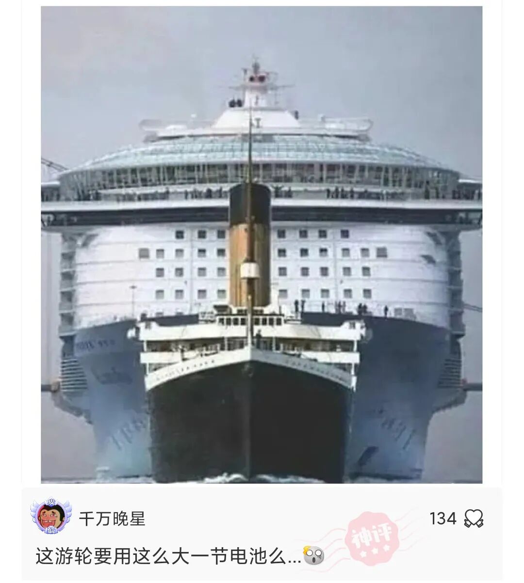 泰坦尼克号和普通邮轮的对比。