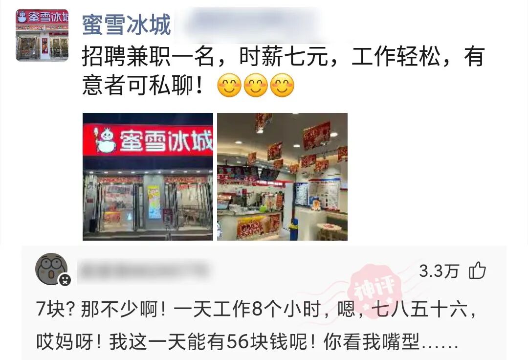 蜜雪冰城:招聘兼职一名,时薪七元,工作轻松,有意者可私聊!!