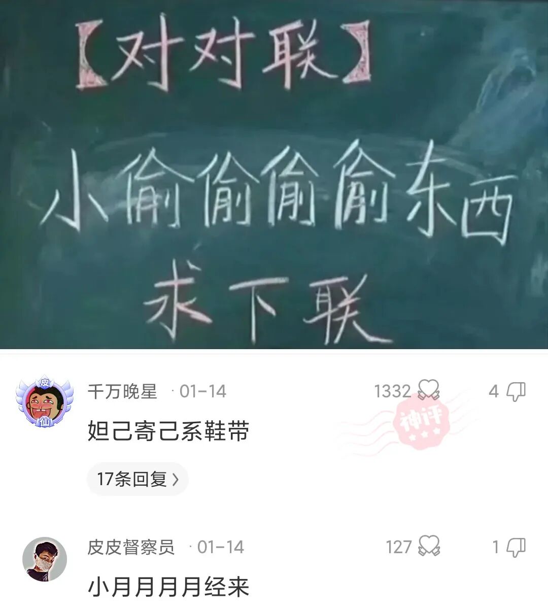 [对对联]上聊:小偷偷偷偷东西,求下联。让我看看到底有多少九年义务教育的漏网之鱼!