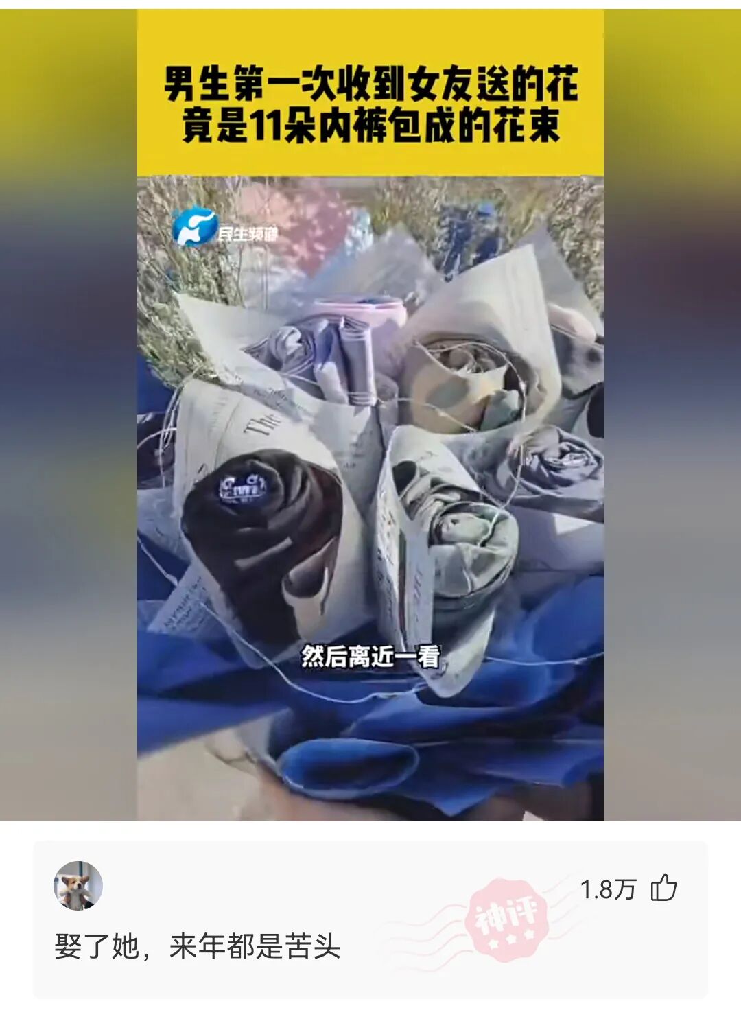 男生第一次收到女友送的花,竟是11朵内裤包成的花束!