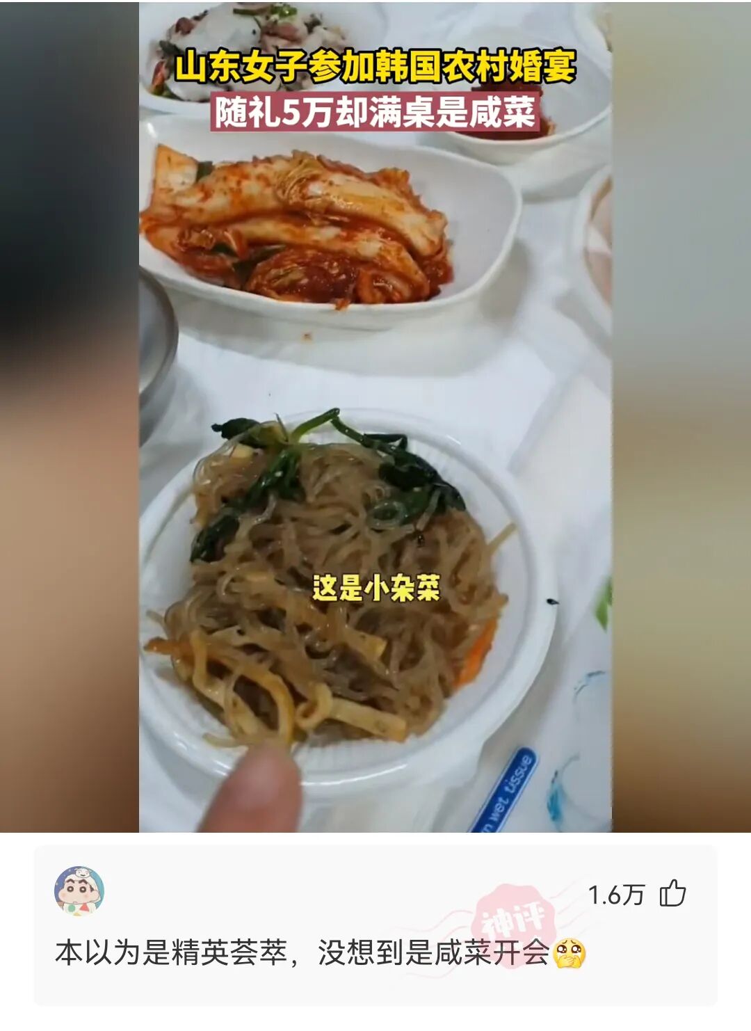 参加韩国农村婚宴,随礼5万却满桌是咸菜!
