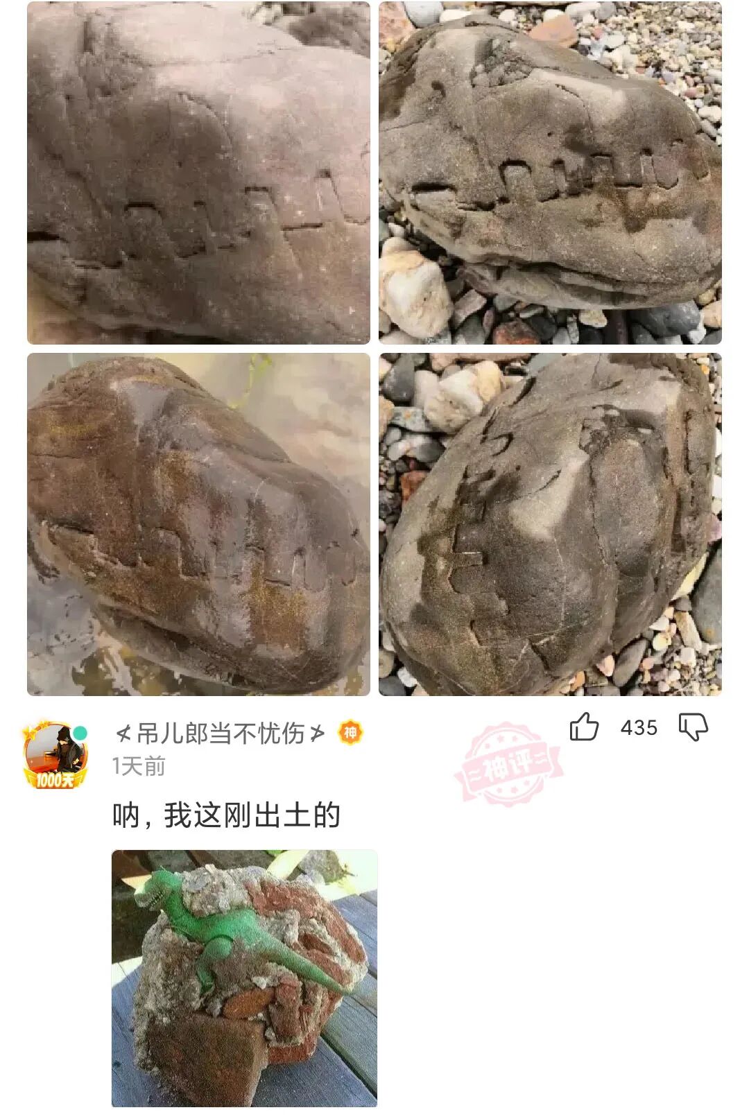 河边发现的一块石头,好像是霸王龙头部化石啊!