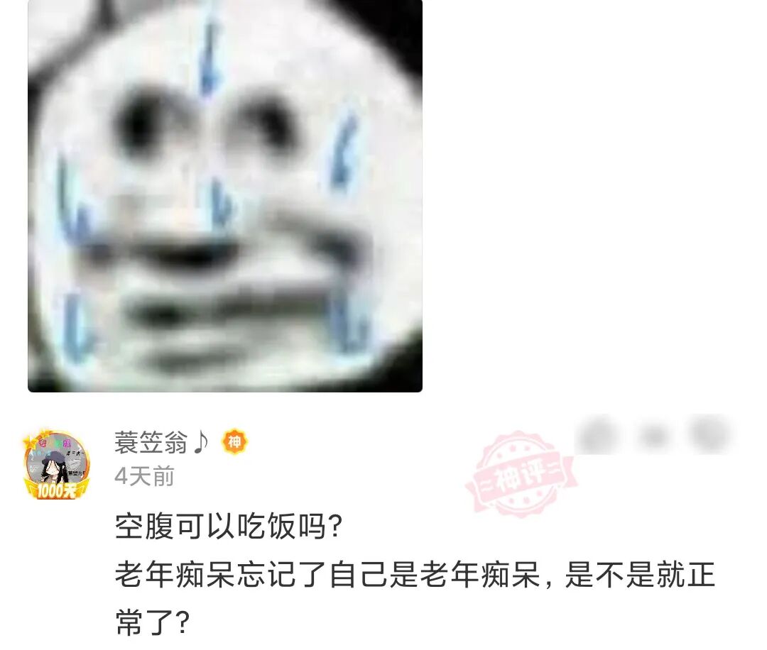 神回复:人间油物晴北鼻,世界太平大傻睛!