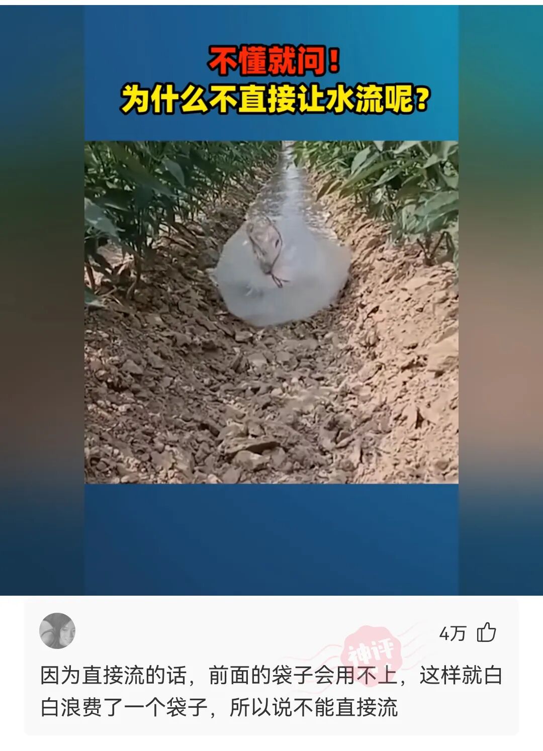 不懂就问:为什么不直接让水流呢?而是用过塑料袋在前面挡着呢???兄弟们有知道的吗?求解答