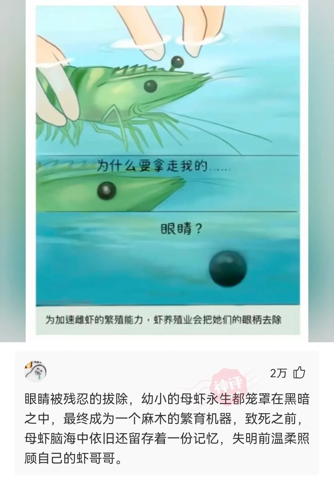 为加速雌虾的繁殖能力,虾养殖业会把她们的眼柄去除,兄弟们,虾还有颜控吗???