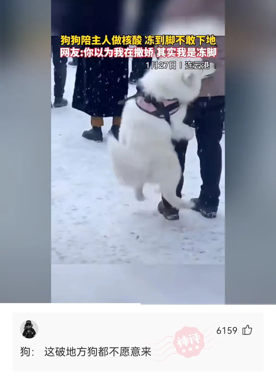 笑死我了,兄弟们,一小区的狗狗陪主人做核酸冻到脚不敢下地,在地上乱蹦乱跳!