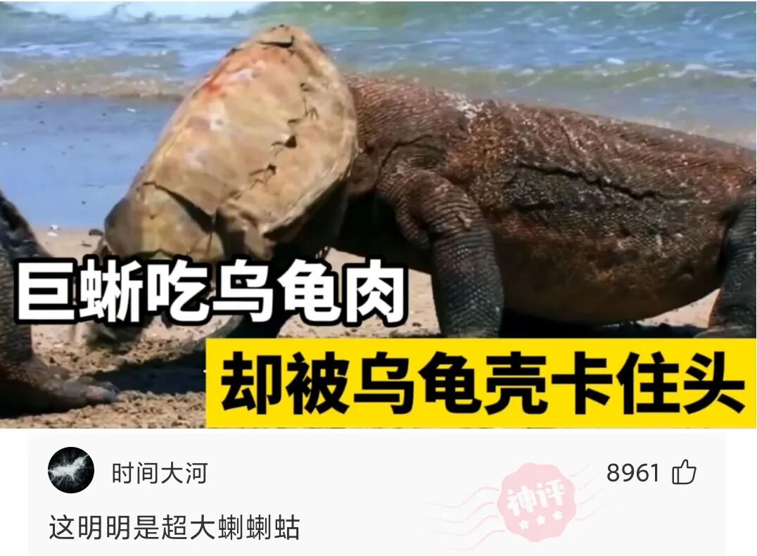 科莫多巨蜥吃完乌龟肉,脑袋却被卡在乌龟壳,令人哭笑不得!
