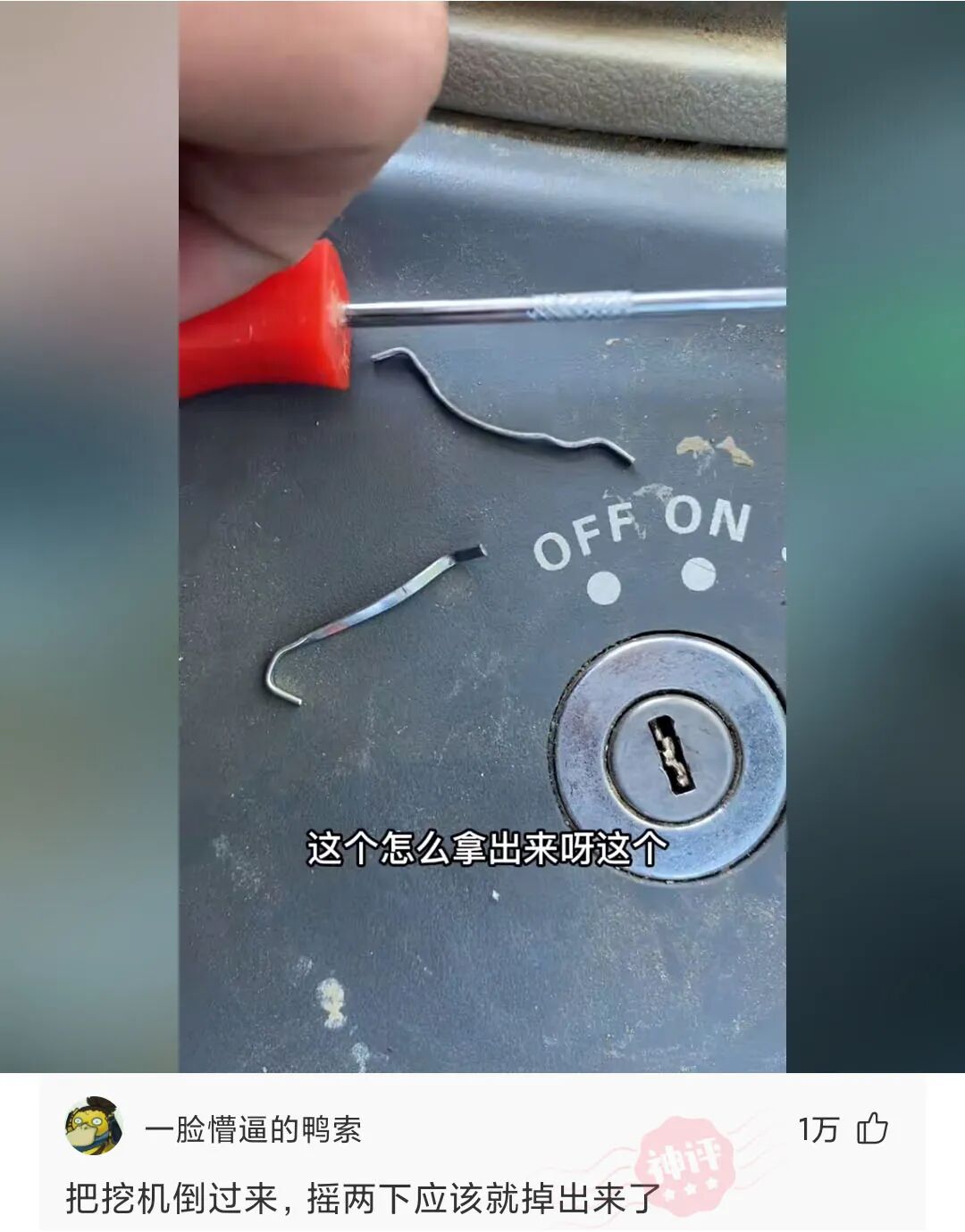 挖机钥匙断里面了,有什么好办法吗?在线等,挺急的。。。