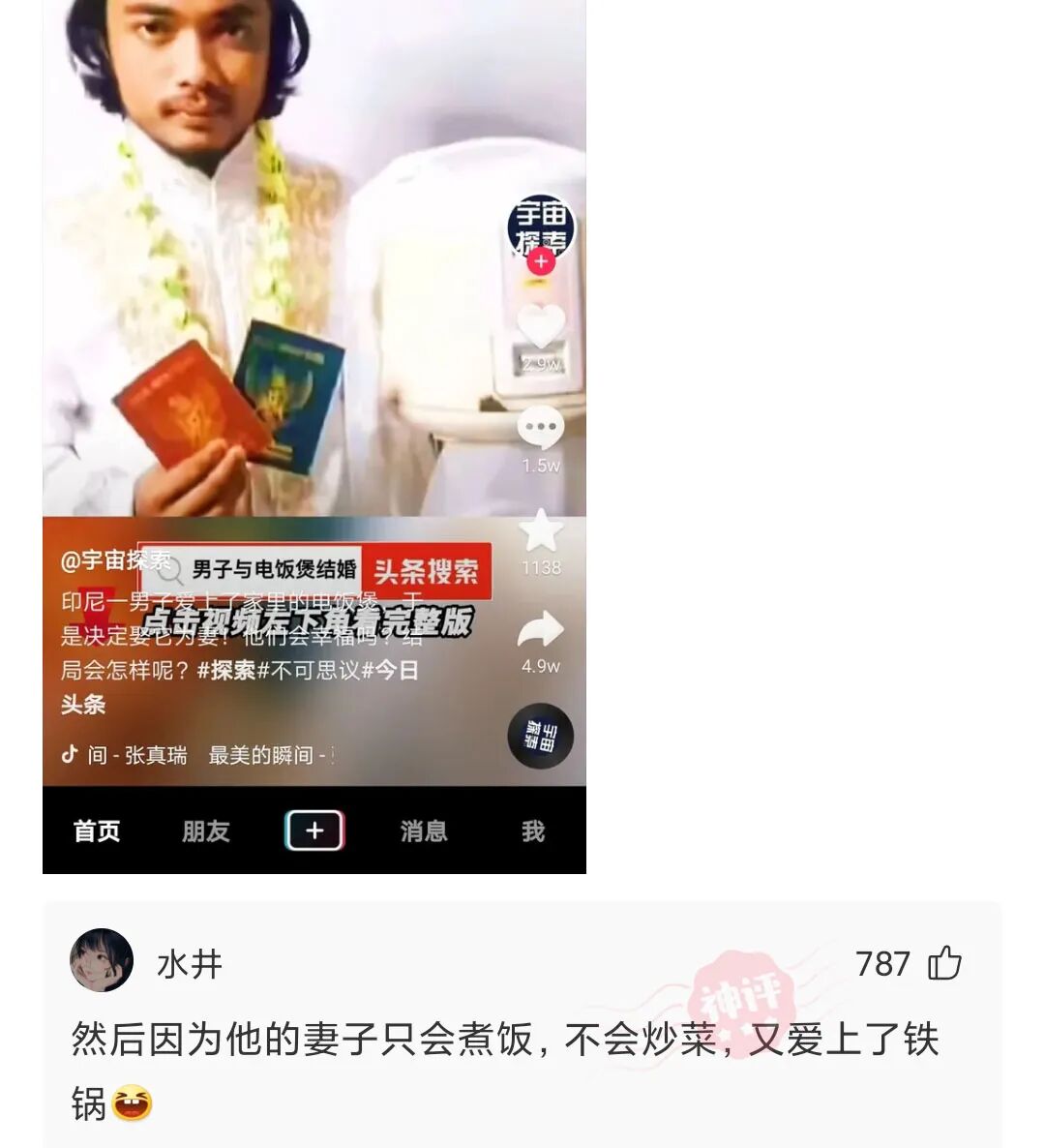 印尼男子爱上家里的电饭煲,觉得它听话又会煮饭,坚决不顾一切与它结婚!