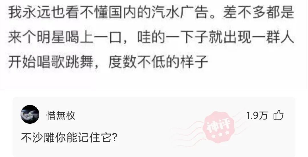 我永远也看不懂国内的汽车广告。差不多都是来个明星喝上一口,哇的一下子就出现一群人开始唱歌跳舞,度数不低的样子!