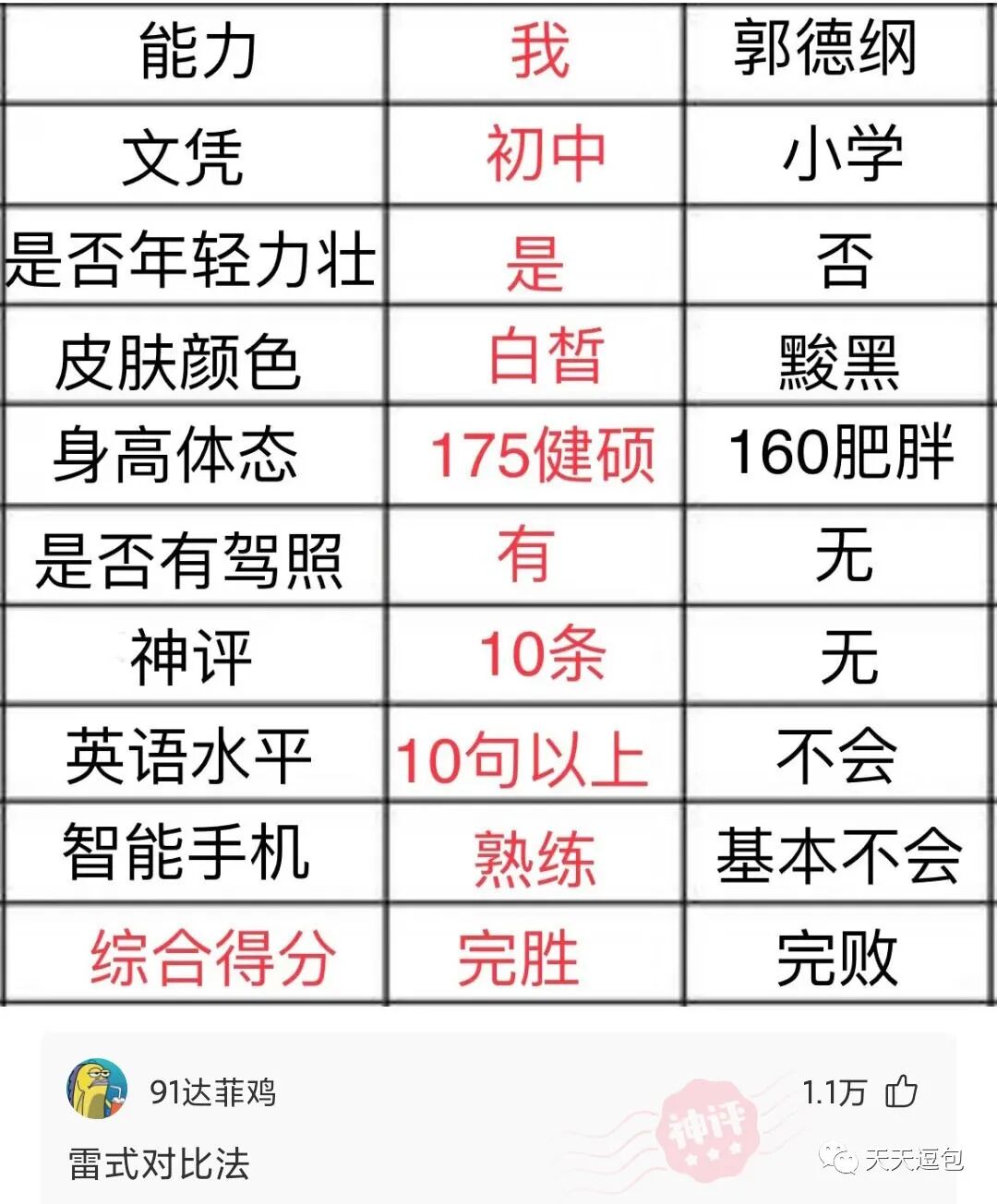 本人的综合能力PK郭德刚,完胜!