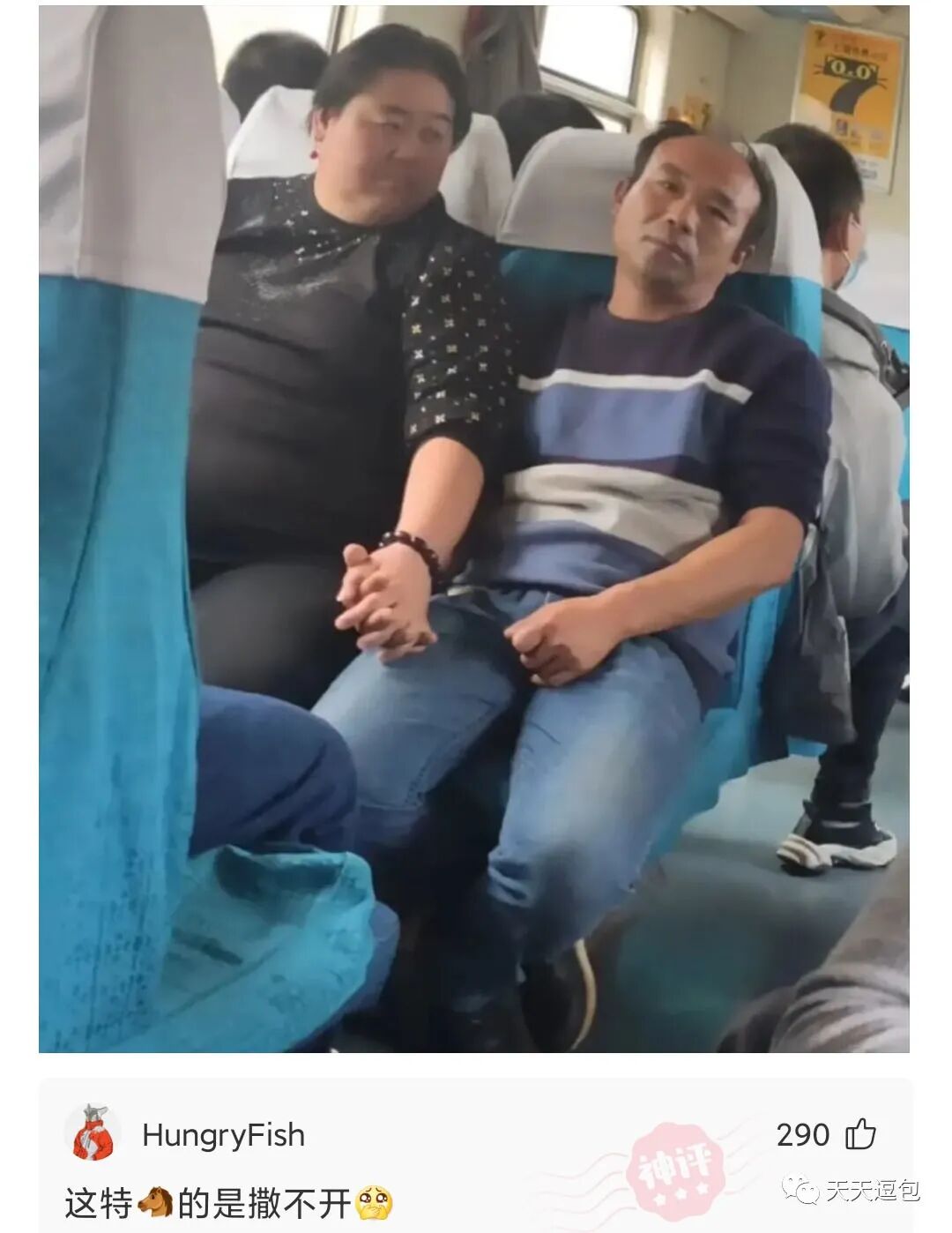 大叔坐了十几个站也舍不得放开媳妇的手,这或许就是爱情吧!