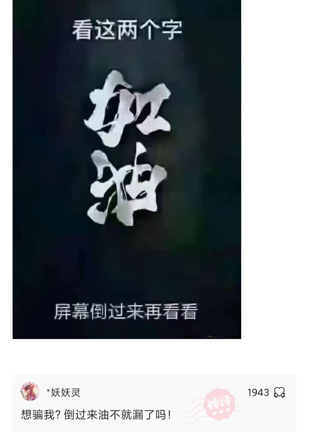 把“加油”两个字倒着看,会有惊喜哦!