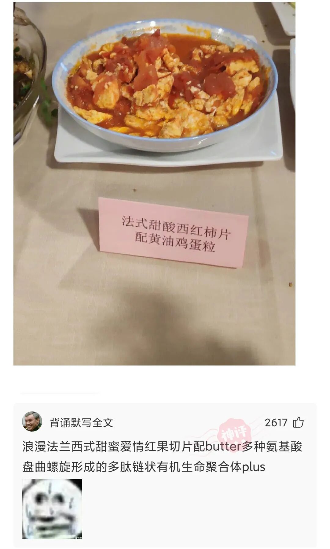 这是我新发明的菜,麻烦兄弟们帮忙给这道菜起个高大尚的名字!