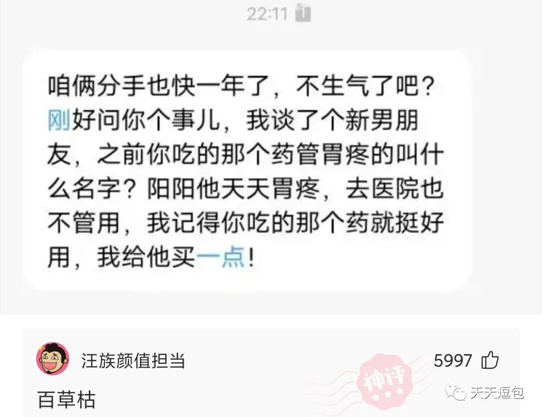 我前任发消息说胃疼,我咋回复能显得我大气一点?