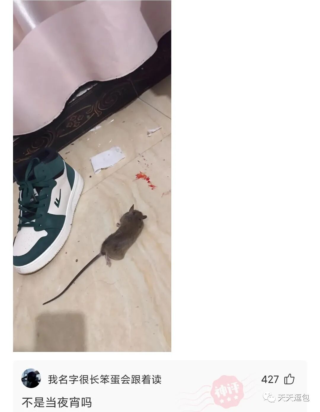 最烦的就是老鼠,半夜TM被它烦醒,非要逼我捉它,我TM一鞋底拍死它!