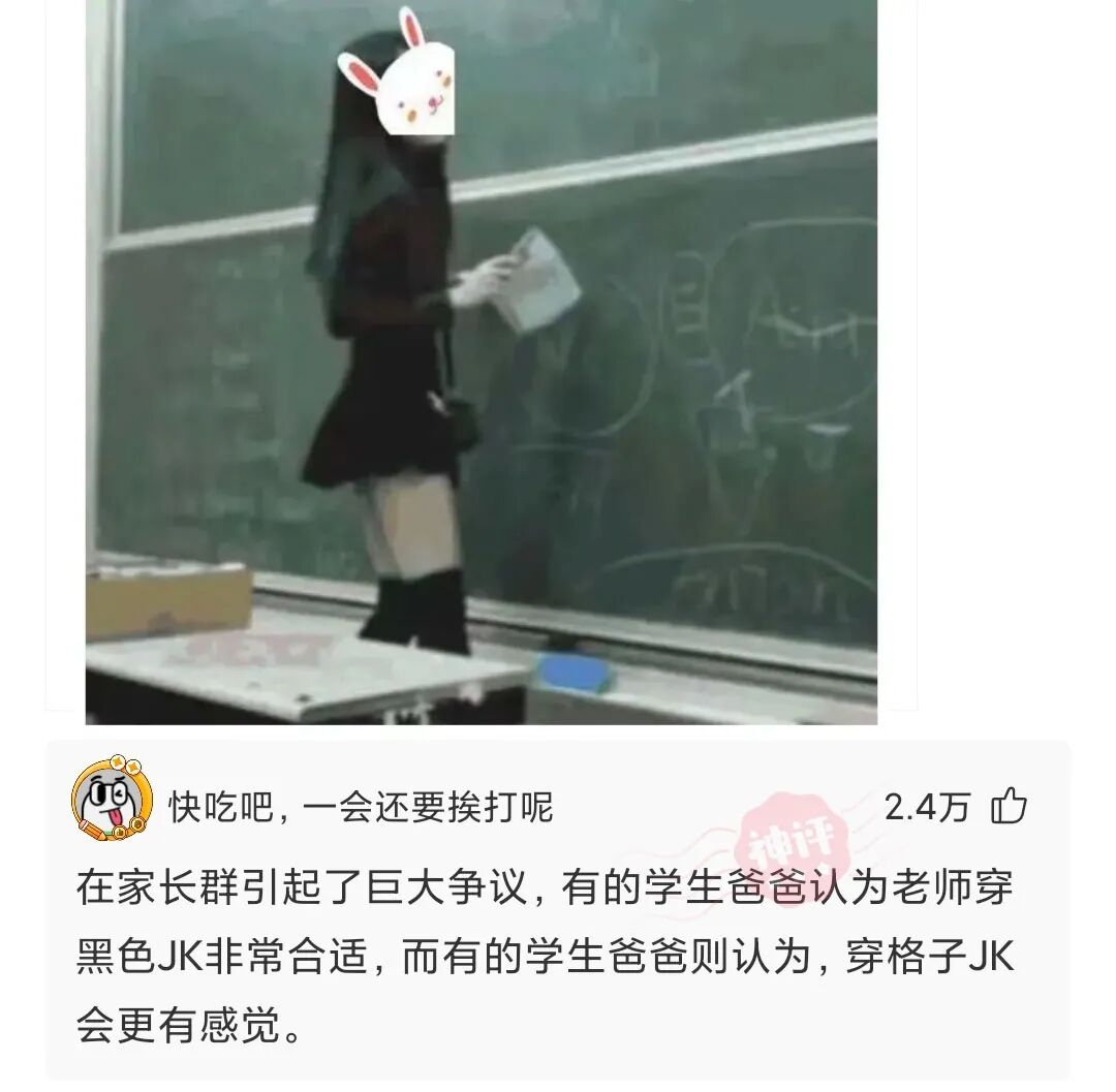 【沙雕问题11】最近,一名年轻的女教师,在上课的时候,直接穿上了JK服装进行讲课,因为裙子太短,照片流出之后,在家长群里引起了巨大争议。