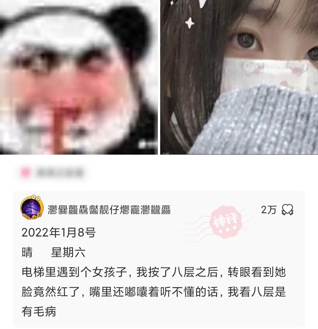 【沙雕问题2】2022年1月9日,雾霾天,星期六。电梯里遇到个男孩子,他按了八层,呵!真会暗示,他八层有点喜欢我吧!